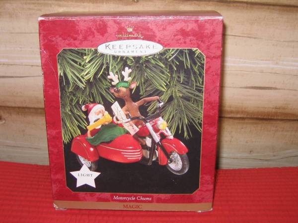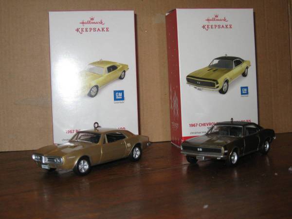HALLMARK KEEPSAKE ORNAMENTS: Thunderbird 1955 and 2005 classic limited edition $50 1969 Chevrolet Camaro $22 1997 motorcycle chums magic lights up $25 1989TinyTinker light and motion $25 1967...
