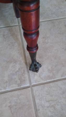 Antique Parlor Lamp Table Ball Claw Foot With Stretcher Shelf Solid Wood possibly Cherry or Mahogany.