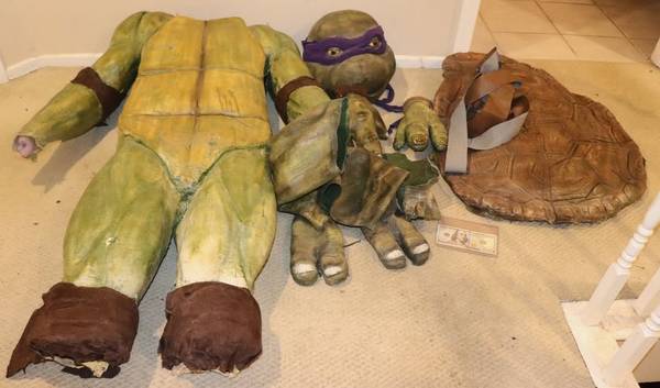 HOLY HORNY HEROES IN A HALF SHELL! PROPDOMAIN JUST DUG UP WHAT? THESE ARE ALL 4 COMPLETE TEENAGE MUTANT NINJA TURTLES FROM THE INFAMOUS PARODY! JUST A FEW OF THE INCREDIBLY COOL PROPS AND COSTUMES...