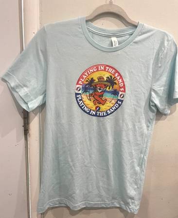 The product is a small-size shirt featuring artwork from the Grateful Dead's Playing in the Sand series. This original piece of music memorabilia represents the iconic rock and pop band from the United States. The shirt is a must-have for fans of the Grateful Dead looking to add a unique and collectible item to their collection.