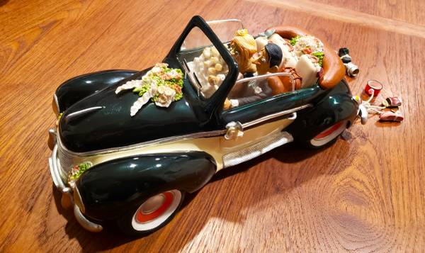 Adorable 14-19 inch long wedding car sculpture by Guillermo Forchino