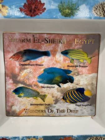 THE ASHTRAY DEPICTS VARIOUS FISH SPECIES FOUND IN THE RED SEA NEAR SHARM EL SHEIKH, EGYPT.