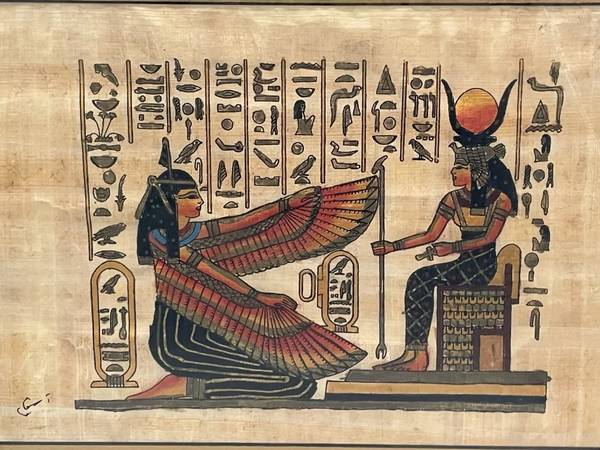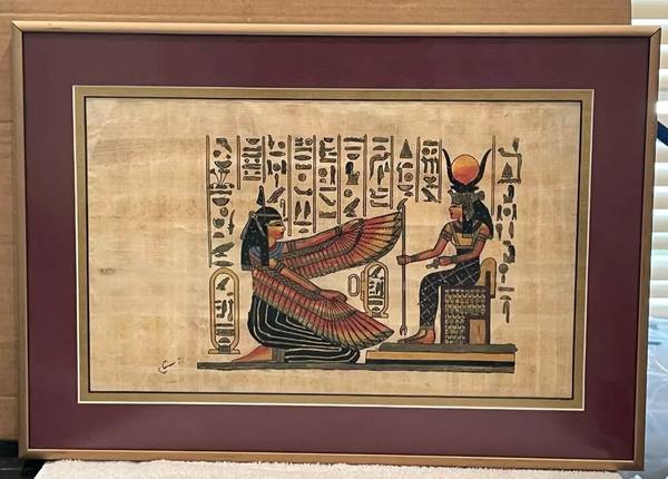 Delve into the essence of Egyptian artistry with the "THE NILE FOR PAPYRUS" vintage hand-painted print, a tribute to the timeless beauty of Egyptian culture. Each piece is a unique creation, meticulously crafted by skilled artisans, reflecting an authentic connection to the rich tapestry of Egyptian heritage. Encased in an elegant frame, this artwork is accompanied by a Certificate of Authenticity, affirming its origin and handcrafted nature. It serves not only as a piece of art but also as a tangible slice of history, offering a glimpse into the meticulous traditional techniques handed down through generations.