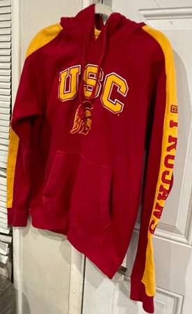 Show your support for the USC Trojans with this cozy pullover hoodie by Gear for Sports G Stadium. Featuring the vibrant combination of burgundy red and yellow, this hoodie is a standout piece of fan apparel. It's designed to fit most with a size small cut to accommodate a larger frame, ensuring comfort for any fan. Made for football enthusiasts, this hoodie is officially licensed and perfect for wearing during the regular season. Crafted with care in Pakistan, it's a unisex adult hoodie that makes a great addition to any USC Trojans fan's collection. Keep the team spirit alive whether you're at the game or just out and about.