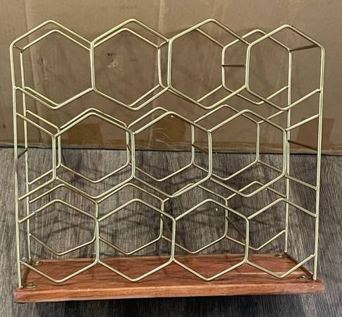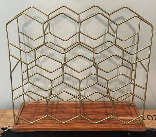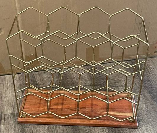 VINTAGE 11 BOTTLE METAL AND WOOD WINE RACK