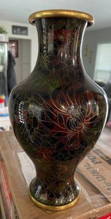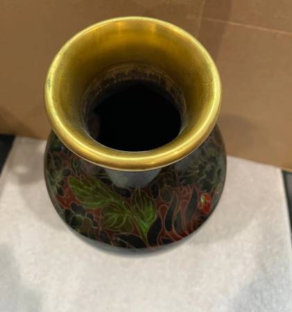 VINTAGE CHINESE CLOISONNE ENAMEL & BRASS VASE