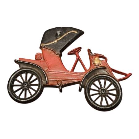 The set includes a 1909 Hupmobile (green car) and a 1910 Buick (white car), 1905 Pierce Arrow (red car). Some paint chipping is typical for these items due to their age. They are ideal for car enthusiasts or collectors, adding a vintage charm to spaces like garages or man caves.