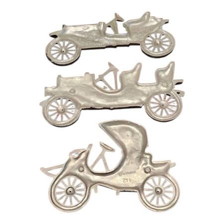 1909 Hupmobile is 10⅝" long x 5" tall x ⅜" deep. 1905 Pierce Arrow is 9¾" long x 6¾" tall x ⅜" deep. 1910 Buick is 11" long x 5½" tall x 3/8" deep.