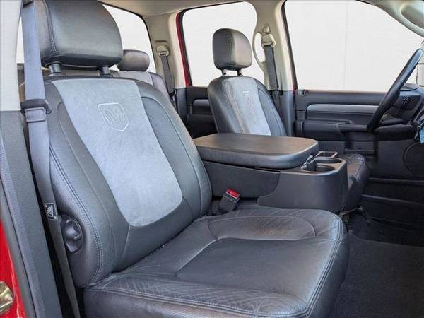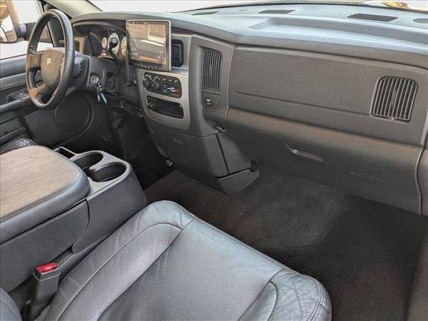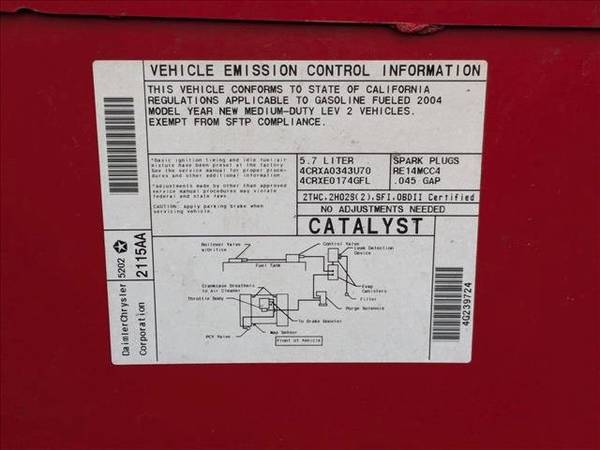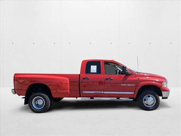 * Laramie Quick-Order Pkg * AM/FM Stereo W/CD Player; Gps Navigation * 5-Speed Automatic Transmission W/Od * Electronic Shift-On-The-Fly Transfer Case * Leather Seats * Navigation System * Trailer Tow Group * Under Rail Box Bedliner * Two-Tone "Lower Break" Paint * Rear Window Defroster * Fog Lamps * Pwr Adjustable Pedals * Flat Folding Load Floor Storage * Folding "Trailer Tow" Pwr Exterior Mirrors * Steering Wheel Radio Controls * 4.10 Axle Ratio * Auto Dimming Rearview Mirror * Leather-Wrapped Steering Wheel * 5.7L (350) Smpi V8 Hemi "Magnum" Engine * California Emissions * Chrome Tubular Group * Dual Rear Wheels * Hd 750-Amp Battery * Leather 40/20/40 Split Bench Seat * Lt235/80R17 All-Season Bsw Tires * Monotone Paint * PowertrainThis vehicle includes a Money-Back Guarantee* and passed our precise inspection process. Best of all the price you see is the price you pay. No haggling. No back and forth. No pressure. And this price is so good it is guaranteed. *Money-Back Guarantee is valid for 5 days or 250 miles, whichever comes first. Subject to certain terms and conditions. See store for details. Some restrictions apply.AutoNation Chrysler Dodge Jeep Ram Valencia Call 661-219-0600 Thank you for your interest in this 2004 Dodge Ram 3500 at AutoNation Chrysler Dodge Jeep Ram Valencia. This pre-owned vehicle is one of thousands in our massive used car inventory at AutoNation. This unit is the 5.7 Hemi 5.7L (350) SMPI V8 HEMI MAGNUM ENGINE This Dodge includes: 5.7L (350) SMPI V8 HEMI MAGNUM ENGINE (STD ) 8 Cylinder Engine Gasoline Fuel *Note - For third party subscriptions or services, please contact the dealer for more information.* Simply put, this Four Wheel Drive is engineered with higher standards. Enjoy improved traction and safety while driving this 4WD Dodge Ram 3500 SLT. It's not a misprint. And the odometer isn't broken. This is a very low mileage Dodge Ram 3500. A rare find these days. You've found the one you've been looking for. Your dream car. AutoNation Chrysler Dodge Jeep Ram Valencia Call 661-219-0600 23820 Creekside Dr. Valencia Ca 91355