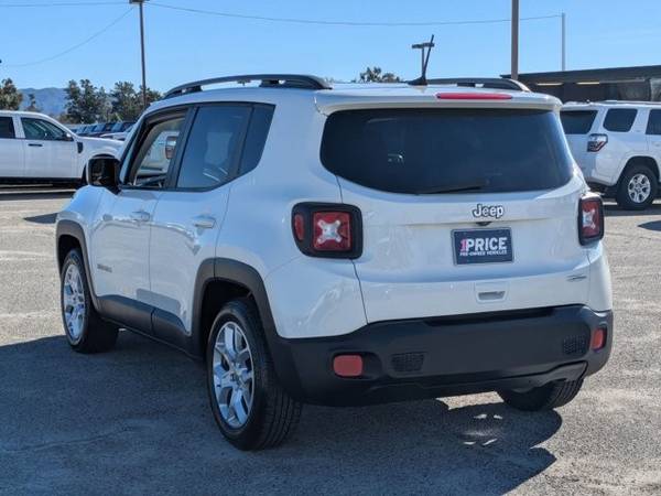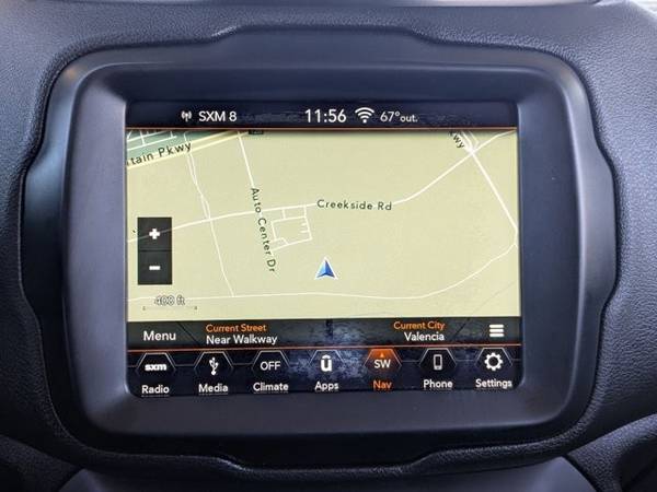 * Engine: 2.4L I4 Zero Evap M-Air * Uconnect 8.4 Nav Group * Popular Equipment Group * Navigation System * Keyless Start * Rear Spoiler * 3.734 Final Drive Ratio * Alpine White * Black; Premium Cloth Bucket Seats * Radio: Uconnect 4C Nav W/8.4" Display * Tires: 215/60R17 Bsw As Touring * Transmission: 9-Speed 948Te Automatic * Wheels: 17" X 7.0" AluminumThis vehicle includes a Money-Back Guarantee* and passed our precise inspection process. Best of all the price you see is the price you pay. No haggling. No back and forth. No pressure. And this price is so good it is guaranteed. *Money-Back Guarantee is valid for 5 days or 250 miles, whichever comes first. Subject to certain terms and conditions. See store for details. Some restrictions apply.AutoNation Chrysler Dodge Jeep Ram Valencia Call 661-219-0600 Thank you for your interest in this 2018 Jeep Renegade at AutoNation Chrysler Dodge Jeep Ram Valencia. This pre-owned vehicle is one of thousands in our massive used car inventory at AutoNation. This Jeep includes: ENGINE: 2.4L I4 ZERO EVAP M-AIR 4 Cylinder Engine Tires - Front All-Season Aluminum Wheels Gasoline Fuel Tires - Rear All-Season *Note - For third party subscriptions or services, please contact the dealer for more information.* The Jeep Renegade Latitude offers a fair amount of utility thanks to its advanced features and unique styling. It's also quite sporty, and injects an ample amount of handling chutzpah into the ridin'-high body of a family-friendly SUV. The look is unmistakably Jeep, the smooth contours and cutting-edge technology of this Jeep Renegade Latitude will definitely turn heads. Based on the superb condition of this vehicle, along with the options and color, this Jeep Renegade Latitude is sure to sell fast. AutoNation Chrysler Dodge Jeep Ram Valencia Call 661-219-0600 23820 Creekside Dr. Valencia Ca 91355