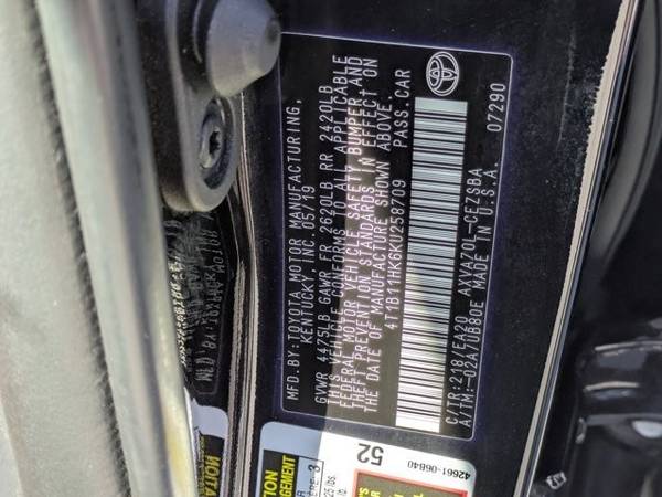The following items have been reconditioned on this vehicle: all new tires! * Nightshade Special Edition Package * Lane Keeping Assist * Rear Spoiler * 50 State Emissions * Black; Fabric Seat Trim W/Softex * Midnight Black MetallicThis vehicle includes a Money-Back Guarantee* and passed our precise inspection process. Best of all the price you see is the price you pay. No haggling. No back and forth. No pressure. And this price is so good it is guaranteed. *Money-Back Guarantee is valid for 5 days or 250 miles, whichever comes first. Subject to certain terms and conditions. See store for details. Some restrictions apply.Jaguar Land Rover Woodland Hills is honored to present a wonderful example of pure vehicle design... this 2019 Toyota Camry SE only has 136,285mi on it and could potentially be the vehicle of your dreams! This 2019 Toyota Camry has great acceleration and wonderful styling without sacrificing exceptional fuel economy. The Toyota Camry SE will provide you with everything you have always wanted in a car -- Quality, Reliability, and Character. There is no reason why you shouldn't buy this Toyota Camry SE. It is incomparable for the price and quality. Driven by many, but adored by more, the Toyota Camry SE is a perfect addition to any home.
