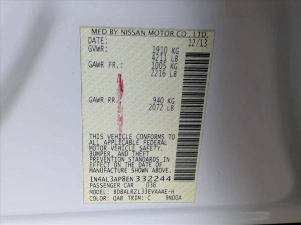 The following items have been reconditioned on this vehicle: new battery! * [H01] Display Audio Package * [B10] Splash Guards * [B93] Body Side Molding * [L92] Floor Mats W/O Trunk Mat (4 Piece) * Keyless Start * [C01] California Emissions * Beige; Cloth Seat Trim * Pearl WhiteThis vehicle includes a Money-Back Guarantee* and passed our precise inspection process. Best of all the price you see is the price you pay. No haggling. No back and forth. No pressure. And this price is so good it is guaranteed. *Money-Back Guarantee is valid for 5 days or 250 miles, whichever comes first. Subject to certain terms and conditions. See store for details. Some restrictions apply.AutoNation Chrysler Dodge Jeep Ram ValenciaCall 661-219-0600Thank you for your interest in this 2014 Nissan Altima at AutoNation Chrysler Dodge Jeep Ram Valencia. This pre-owned vehicle is one of thousands in our massive used car inventory at AutoNation. This wonderfully fuel-efficient vehicle offers a supple ride, quick acceleration and superior styling without sacrificing MPGs. Driven by many, but adored by more, the Nissan Altima 2.5 S is a perfect addition to any home. There are many vehicles on the market but if you are looking for a vehicle that will perform as good as it looks then this Nissan Altima 2.5 S is the one! More information about the 2014 Nissan Altima: The 2014 Nissan Altima offers plenty of choices for buyers looking for a smart, affordable midsize sedan. With a focus on building premium attributes into every facet of the new Altima--inside, outside and under the hood--buyers will find a car that punches above its weight in this hotly contested segment. This model sets itself apart with standard continuously variable transmission, available amenities to suit every taste, Handsome, flowing lines, two great engine choices, and excellent fuel economy from 2.5L AutoNation Chrysler Dodge Jeep Ram ValenciaCall 661-219-060023820 Creekside Dr. Valencia Ca 91355