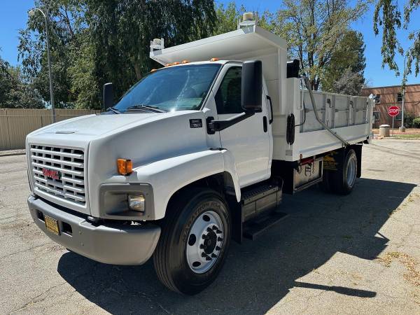 2009 GMC Topkick C-7500 Dump Truck, 8.1L V-8, Allison auto trans, low 54k miles, A/C, hydraulic brakes, 25,900 G.V.W., Class "C" license OK, P.T.O., rear air bags, two speed rear differential, 15' steel dump body, tarp, tool bins, strobe lights, pintle hitch, 90% tire tread, just serviced Ex-Gov., fleet maintained since new. Nationwide shipping and financing are available. Checkout all our inventory at TruckDepotLA.com.