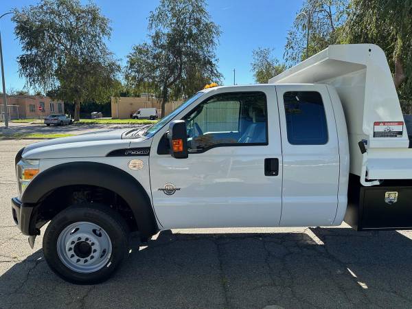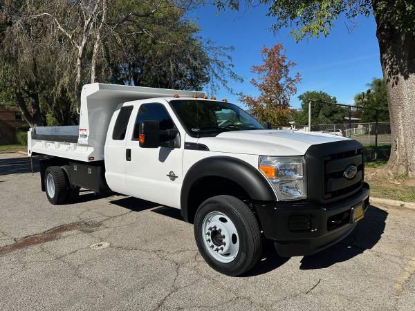 2016 Ford F-550 S.D. Extra Cab 4x4 Gravel Dump Truck, 6.7L Powerstroke diesel, auto trans, A/C, low 47k miles, tilt, alarm, power windows and locks, power mirrors, trailer brakes, bluetooth radio, backup camera, 17,500 g.v.w., 11' Marathon dump body, ditch gate, new tool bins, tow pkg, new front tires, 80%-90% tire tread, just serviced, runs and operates excellently. Nationwide shipping and financing are available. Checkout all our inventory at TruckDepotLA.com.