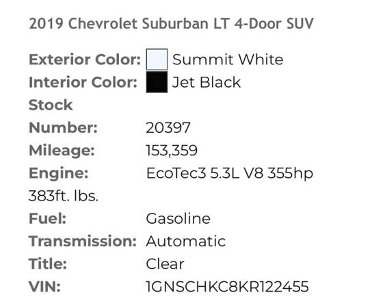 2025 2024 2023 2022 2021 2020 2019 2018 2017 2016 2015 2014 2013 2012 2011 2010 2009 2008 2007 2006 2005 2004 2003 2002 2001 2000 1999 1998 1997 1996 1995 1995 1994 1993 1993 1965 1966Chevrolet Chevy Trax LS Chevrolet Chevy Trax LT Chevrolet Chevy Trax Premier Chevrolet Chevy Equinox L Chevrolet Chevy Equinox LS Chevrolet Chevy Equinox LT Chevrolet Chevy Equinox Premier Chevrolet Chevy Blazer L Chevrolet Chevy Blazer 1LT Chevrolet Chevy Blazer 2LT Chevrolet Chevy Blazer 3LT Chevrolet Chevy Blazer RS Chevrolet Chevy Blazer Premier Chevrolet Chevy Traverse L Chevrolet Chevy Traverse LS Chevrolet Chevy Traverse LT Chevrolet Chevy Traverse RS Chevrolet Chevy Traverse Premier Chevrolet Chevy Traverse High Country Chevrolet Chevy Suburban LS Chevrolet Chevy Suburban LT Chevrolet Chevy Suburban LTZ Luxury Package Chevrolet Chevy Suburban Premier Chevrolet Chevy Tahoe LS Chevrolet Chevy Tahoe LT Chevrolet Chevy Tahoe RST Chevrolet Chevy Tahoe Z71 Chevrolet Chevy Tahoe Premier Chevrolet Chevy Tahoe High Country Ford Expedition XL Ford Expedition STX Ford Expedition Limited Ford Expedition King Ranch Ford Expedition Platinum Ford Edge SE Ford Edge SEL Ford Edge ST-Line Ford Edge Titanium Ford Edge ST Ford Flex SE Ford Flex SEL Ford Flex Limited Ford Bronco Sport Ford Bronco Ford Escape S Ford Escape SE Ford Escape Sport Ford Escape SEL Ford Escape Titanium Ford Explorer S Ford Explorer SE Ford Explorer Sport Ford Explorer SEL Ford Explorer Titanium Nissan Rogue S Nissan Rogue SV Nissan Rogue SL Nissan Murano S Nissan Murano SV Nissan Murano SL Nissan Murano Platinum Nissan Pathfinder S Nissan Pathfinder SV Nissan Pathfinder SL Nissan Pathfinder Platinum Nissan Armada SV Nissan Armada SL Nissan Armada Platinum Nissan Armada Platinum Reserve Toyota C-HR LE Toyota C-HR XLE Toyota C-HR Limited Toyota RAV4 LE Toyota RAV4 XLE Toyota RAV4 XLE Premium Toyota RAV4 Adventure Toyota RAV4 Limited Toyota Highlander L Toyota Highlander LE Toyota Highlander XLE Toyota Highlander XSE Toyota Highlander Limited Toyota Highlander Platinum Toyota 4Runner SR5 Toyota 4Runner Trail Special Edition Toyota 4Runner TRD Off-Road Toyota 4Runner TRD Off-Road Premium Toyota 4Runner Venture Special Edition Toyota 4Runner Limited Toyota 4Runner Nightshade Toyota Sequoia SR5 Toyota Sequoia TRD Sport Toyota Sequoia Limited Toyota Sequoia TRD Pro Toyota Sequoia Platinum Toyota Land Cruiser Mercedes Benz GLC Mercedes Benz GLE Mercedes Benz GLS Mercedes Benz G-Class AMG BMW X1 BMW X2 BMW X3 BMW X4 BMW X5 BMW X6 M-Sport M Package Cadillac XT4 Sport Cadillac XT4 Luxury Cadillac XT5 Premium Luxury Cadillac XT5 Sport Cadillac XT5 Luxury Cadillac XT5 Premium Luxury Cadillac XT6 Sport Cadillac XT6 Luxury Cadillac XT6 Luxury Premium Cadillac Escalade Luxury Cadillac Escalade Premium Luxury Cadillac Escalade Sport Cadillac Escalade Premium Luxury Platinum Cadillac Escalade Sport Platinum Cadillac Escalade ESV Luxury Cadillac Escalade ESV Premium Luxury Cadillac Escalade ESV Sport Cadillac Escalade ESV Premium Luxury Platinum Cadillac Escalade ESV Sport Platinum GMC Acadia GMC Acadia AT4 GMC Acadia Denali GMC Terrain GMC Terrain Denali GMC Yukon GMC Yukon AT4 GMC Yukon Denali Land Rover Defender 90 Land Rover Defender 110 Land Rover Defender 130 Land Rover Discovery S Land Rover Discovery R-Dynamic S Land Rover Discovery R-Dynamic SE Land Rover Discovery HSE Land Rover Range Rover Land Rover Range Rover Evoque Land Rover Range Rover Sport Land Rover Range Rover Velar Land Rover Discovery Sport Jeep Grand Cherokee Laredo Jeep Grand Cherokee Limited Jeep Grand Cherokee Trailhawk Jeep Grand Cherokee Overland Jeep Grand Cherokee Summit Jeep Grand Cherokee SRT Jeep Grand Cherokee Trackhawk Jeep Cherokee Latitude Jeep Cherokee Latitude Plus Jeep Cherokee Altitude Jeep Cherokee Limited Jeep Cherokee Overland Jeep Compass Sport Jeep Compass Latitude Jeep Auto
