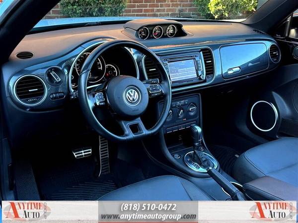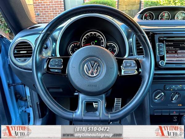 Introducing the stunning 2014 Volkswagen Beetle Convertible R-Line PZEV in a captivating Reef Blue Metallic exterior and a sleek Titan Black interior. This beauty is powered by a robust 2.0L Turbo I4 210hp 207ft. lbs. PZEV engine, offering a perfect blend of power and efficiency.