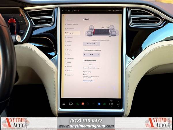 Standard factory features of the 2015 Tesla Model S 85D include a 17-inch touchscreen display that serves as the central hub for vehicle controls and infotainment, enabling seamless connectivity and access to navigation, music, and vehicle settings. Additionally, the vehicle is equipped with advanced safety features, including a suite of airbags, stability control, and traction control, ensuring peace of mind for both driver and passengers.