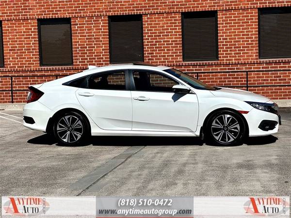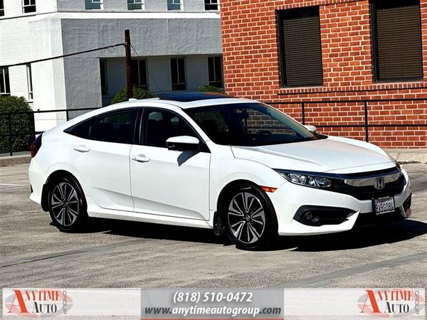 Explore the sleek and efficient 2017 Honda Civic EX-T in White Orchid Pearl, featuring a 1.5L Turbo I4 engine that delivers 174hp and 162ft. lbs. of torque. With a striking Black interior, this Civic comes with a range of factory default features that elevate the driving experience. Enjoy the convenience of keyless entry, push-button start, and a power moonroof for a touch of luxury. Stay connected with Bluetooth connectivity, a 7-inch touchscreen display, and Apple CarPlay/Android Auto compatibility. Safety is paramount with a multi-angle rearview camera, Honda LaneWatch blind-spot display, and adaptive cruise control. With excellent mileage of under 89,000 miles, averaging less than 10,000 miles annually, this Civic achieves an impressive 32 MPG in the city and 42 MPG on the highway. Backed by a clean CARFAX report, this well-maintained vehicle is in excellent overall condition, ready to elevate your driving experience.