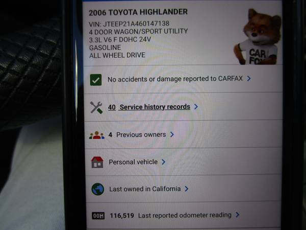 I am selling a very nice 2006 Toyota Highlander 4-Door Sport Utility Vehicle, 3.3L V6 Engine, All Wheel Drive, Automatic Transmission, with 116k original miles.