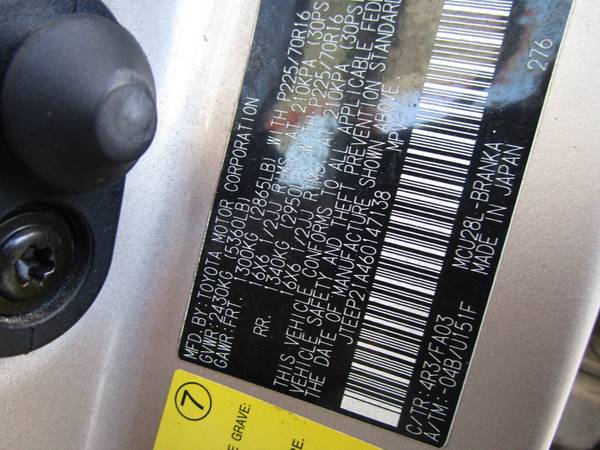 The car is Excellent condition for its age and has been very well kept on the exterior as well as the interior. Everything is original on the vehicle. The car has been a non-smoker vehicle. The headliner is in great shape. There are no cracks on the dash. It was brought new at Toyota of Lake City in Seattle Washington and then came to California less than a year later in April of 2007. The car has been owned and kept in California ever since (Bakersfield area). It has a Clean Title and a Clean Carfax History Report with 40 Service Records reported to Carfax (Mainly done at Bill Wright Toyota Service Department in Bakersfield, CA).