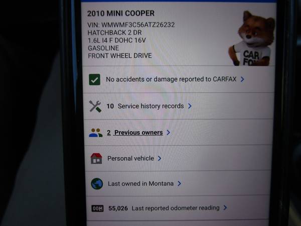 I am selling a nice 2010 Mini Cooper 2-Door Hatchback, 1.6L Inline 4-Cylinder Engine, Front Wheel Drive, 6-Speed Manual Transmission, with 57k original miles.