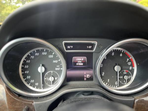 This 2015 Mercedes-Benz ML 350 comes with a robust 3.5L V6 engine, delivering 302 horsepower and 273 ft. lbs. of torque. The exterior is finished in a sleek Palladium Silver Metallic color, complemented by a refined Black interior. With less than 98,000 miles on the odometer, averaging under 9,000 miles annually, this vehicle is in excellent overall condition. The factory default features include a host of luxurious amenities such as power-adjustable front seats, dual-zone automatic climate control, a power liftgate, a sunroof, Bluetooth connectivity, and a premium sound system. With fuel efficiency rated at 18 MPG in the city and 24 MPG on the highway, this Mercedes-Benz ML 350 blends performance and efficiency seamlessly.