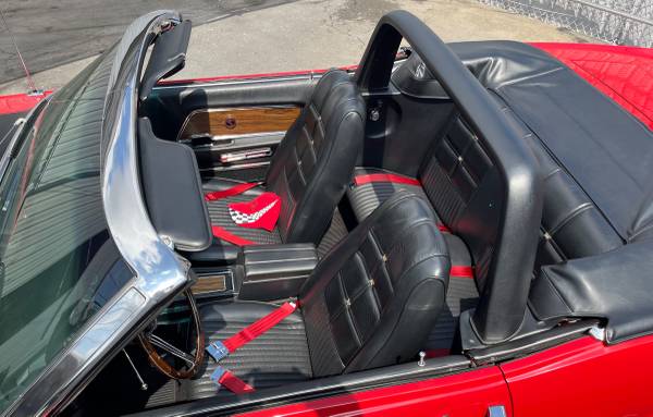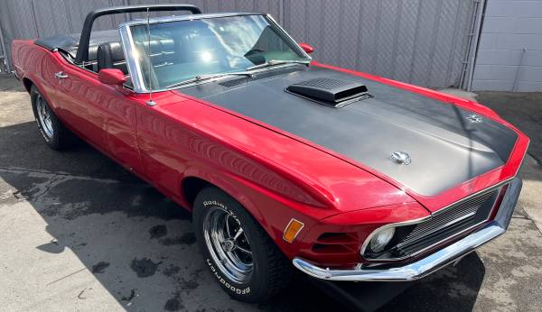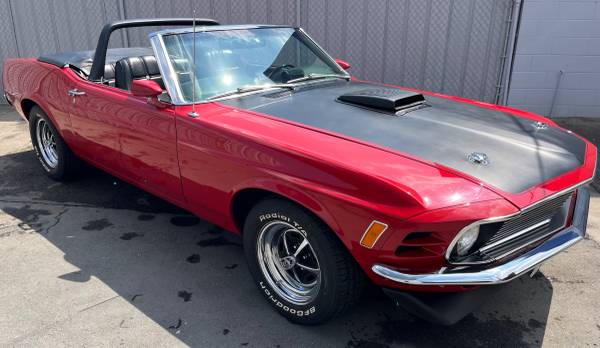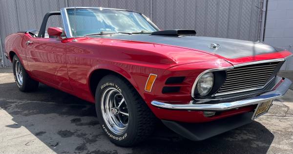 This 1970 Ford Mustang Convertible, restored and modified 14 years ago, was transformed from a standard model with a 302 engine and light blue paint to a restomod with a Cobra Jet-spec 351 engine, Candy Apple Red paint, a Traction Lok differential, and more. The car has been driven regularly since its restoration and shows a few paint touch-ups and other minor signs of wear, but is said to be in very good condition with no known issues.
