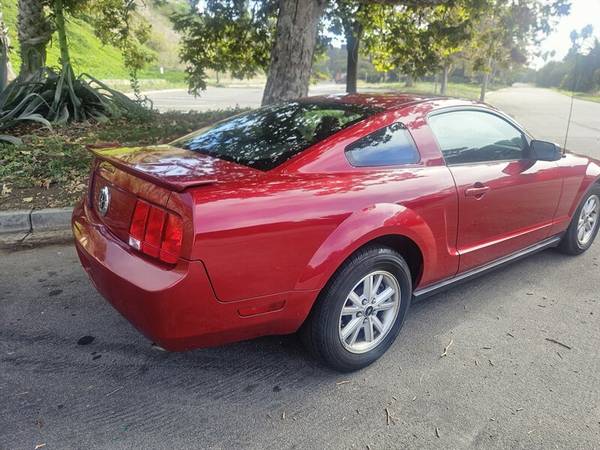 2008 Ford Mustang V6 Deluxe, a classic American muscle car that combines style and performance. Powered by a robust 4.0L V6 engine, this model delivers 210 horsepower and 240 ft-lbs of torque, ensuring an exhilarating driving experience. With a striking red exterior and a sleek black interior, this Mustang stands out on the road.