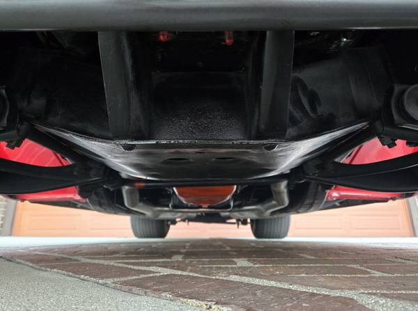 AS IS THE REST OF THIS CHEVY, THE ENGINE BAY IS EXCEPTIONALLY WELL RESTORED! IT IS BEAUTIFULLY FINISHED IN BODY MATCHING MASERATI RED. THIS AWESOME CUSTOM IS POWERED BY A 383 (BORED AND STROKED 350) CHEVROLET ENGINE WITH VORTEC HEADS, ROLLER ROCKERS, POLISHED ALUMINUM CHEVROLET VALVE COVERS, A NEW ALUMINUM HIGH PERFORMANCE HOLLEY 750 CFM DOUBLE PUMPER CARB ON A POLISHED ALUMINUM HIGH RISE INTAKE MANIFOLD, AND HEADERS PROFESSIONALLY BUILT BY MIKES HOTRODS IN SIMI VALLEY CALIFORNIA. THE TRANS IS A 700R4 WITH ELECTRIC NO-LOCKUP. POWER IS TRANSFERRED TO A FORD POSITRACTION 9” REAR END WITH 4.10 GEARS. OTHER FEATURES INCLUDE A CHROMED ALTERNATOR, DUAL CHAMBER MASTER CYLINDER, PAINTED POWER BOOSTER, A CHAMPION ALUMINUM RADIATOR, AN ACCEL SUPER STOCK COIL, AN ALLSTAR PERFORMANCE BATTERY DISCONNECT SWITCH UNDER THE HOOD, AND DUAL EXHAUST. A NEW ORIGINAL SPECS WIRING HARNESS WAS ALSO INSTALLED. THIS CHEVY FEATURES 4-WHEEL POWER DISC BRAKES, AND THE STOCK FRONT END WAS COMPLETELY REBUILT AT MIKE’S FRAME. THE REAR END IS 4-LINK WITH ADJUSTABLE COIL OVERS.