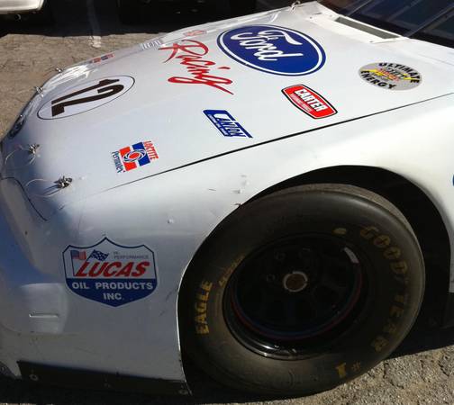 I acquired ownership of this NASCAR LAUGHLIN/FORD THUNDERBIRD in December 2012 from an avid race car collector and vintage racer. It was represented to me as a 1993 Laughlin/Ford NASCAR #003. I was told that this is a 1993 NASCAR FORD THUNDERBIRD was part of Bobby Allison’s 1993 race team. The seller wrote “It is a 1993 Nascar Ford, Bobby Allison's car ran a complete season with several wins. Sold in 1994 to Cunningham racing and also ran a complete season. The car is race ready and has a fresh built Roush dry sump engine.” In a second email he stated that it is a “1995 Laughlin chassis, 003, Engine is a ford 355 ci built by Ernie Elliott; All aluminum dry sumped”.