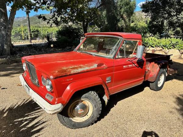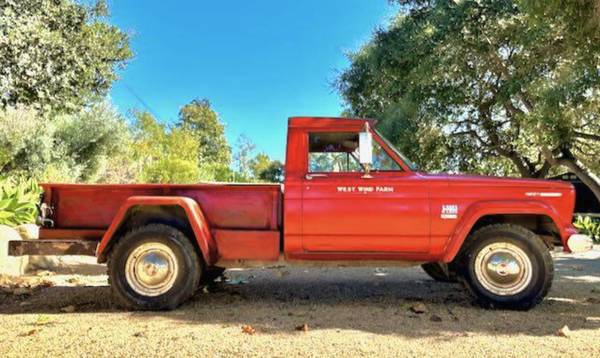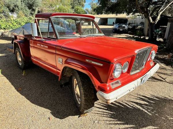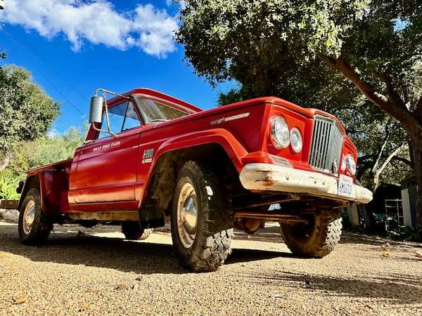 ’68 JEEP Gladiator Thriftside J2000 4x4. This is real rarity due to its extremely unusual specification: factory short bed stepside (Jeep named this Thriftside), factory installed Dauntless 350 V8 (supplied by Buick). It also sports a manual transmission with original floor shift. I bought this a number of years ago from the original owner’s family and the name of their farm is still hand painted on the doors. This truck was never modified or abused - it is bone stock and spent most of it's life in sunny Tucson. I planned to keep the perfectly aged patina intact, but it could also be restored if desired. Running condition but needs brake work. Has been in storage for some time and will need service and TLC. Clean California title in my name (non-op). Owners manuals / service records included. $15k
