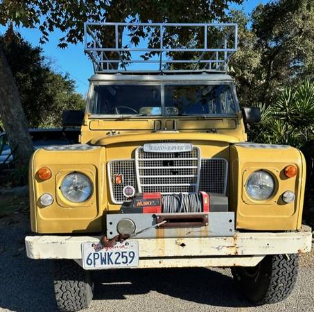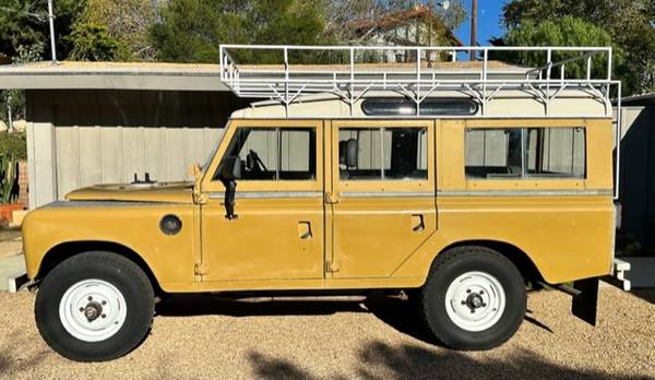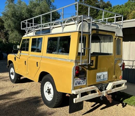 ’73 Land Rover Series 3 109 Station Wagon. 9-10 passenger with tropical roof and Alpine windows. Legally imported from Australia and have current California title in my name. Rare Bahama Gold color, right hand drive, and Tropical roof. Strong running GM Holden “Red” 3.3 liter 6 cylinder conversion with Fairey overdrive. Heavy duty Husky Superwinch (Camel Trophy type). Full size roof rack with ladder. Just took part in the Vineyard Series Land Rover event in Santa Barbara. Unrestored "survivor" with great patina. $30k