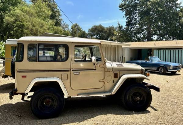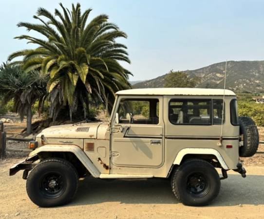 ’79 Toyota FJ40 Land Cruiser. Listing this for a close friend that has owned it for 40+ years. Complete and original including factory paint and interior. It is an original California blue plate car and is currently registered. Never apart or modified. Runs, drives, shifts, stops, and still has factory emissions equipment. It has body rust from living close to the ocean (Newport Beach) but frame is very solid. Needs a full restoration but a good candidate to start with as there is no prior renovation work or modifications to undo. These later FJ’s are more desirable than the earlier models (due to factory disc brakes, double rear doors, etc.). $12,500