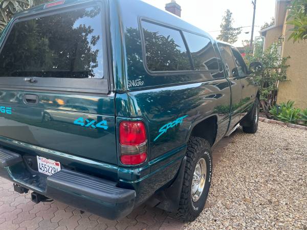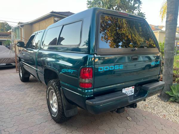 1998 DODGE RAM 1500 SPORT V8 5.9 LITER ENGINE, SHORT BED, CLEAN TITEL IN EXLENT SHAPE, 4X4 WORK FINE, COLD A/C. WITH BRAND NEW 4 BFGOODRIGH TIERS KO3, NICE AND CLEAN AND STRAIGHT BUDY. MATCHING COLOR SNUGTOP CAMPERSHEEL IN EXLENT CONDITION, WITH ORIGINAL DODGE BED LINER, RUN AND DRIVE PERFECT, ORIGINAL RADIEO WITH C/D PLAYER. PASS SMOG TEST WITH FLAYING NUMBER, SERIOUS INQUIERIES ONLY