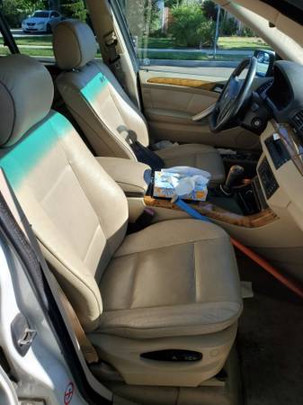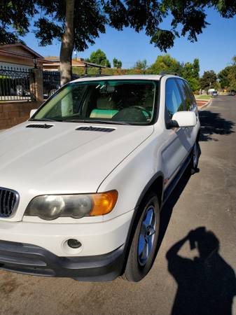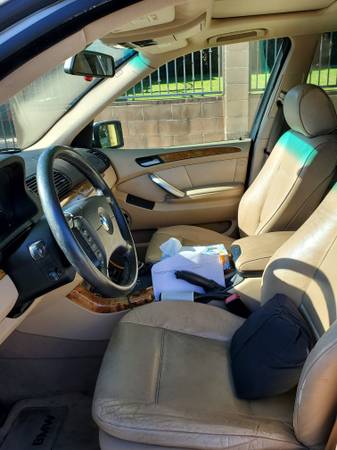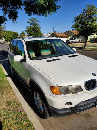 2001 BMW X5 3.0 six cylinder engine all wheel drive, excellent running & looking condition in & out, tan leather interior, cold AC & hot heater, working sunroof, power doors & windows everything works new OE transfer case chain & seals were installed about 1000 miles ago, new radiator, new coolant reservoir & mount, new genuine thermostat with housing, no engine light, no overheating, keyless entry remote, new smog on August 28 good for 3 months new renewal tag good until September 2025. serious buyers with cash contact me at show contact info