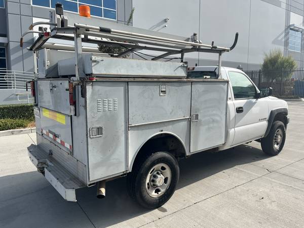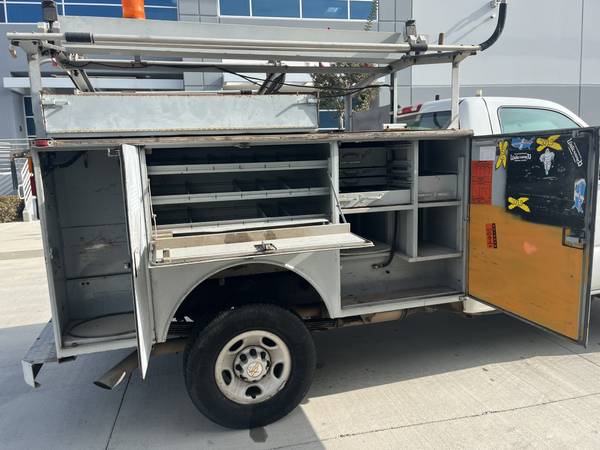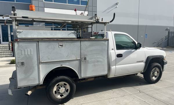 Straight from AT&T. Very clean one owner work truck. 6.0 Liter engine, 4L80 heavy duty transmission. Original 79K miles. 8' Utility bed has a lot of storage space and each side locks securely with one padlock. Ladder racks on top. This truck runs and drives great. No lights, no noises. No a/c. Clean title, clean record. No accidents. Sold by dealer. Please call, text, or email Robert with any questions.