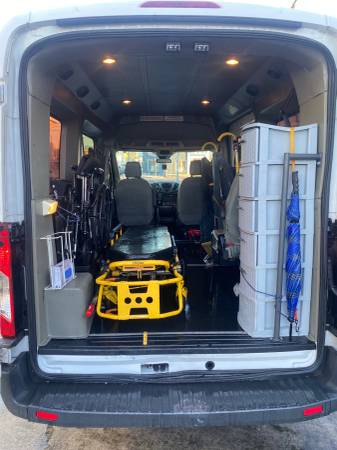 This 2017 Ford Transit is fully equipped to safety and comfortably transport wheelchair and gurney patients- perfect for NEMT services.