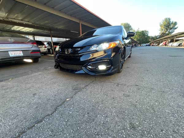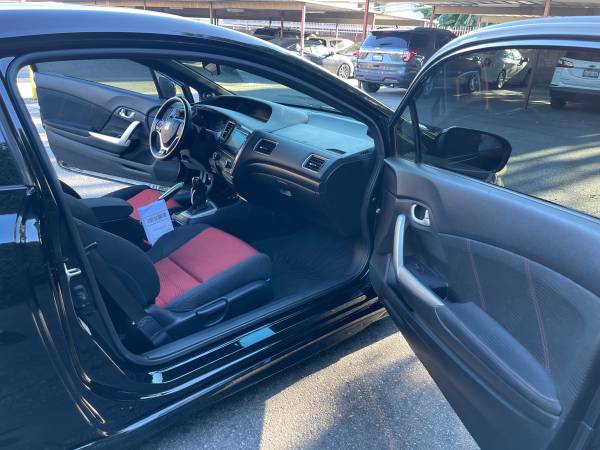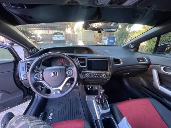 I'm selling my 2015 Honda Civic Si. It has a clean title and very low mileage. The condition is excellent with black exterior and black interior. There are no mechanical issues as well. It runs smoothly and is a joy to drive around. It has remote keyless entry (with push button start). It's equipped with the navigation system touch screen motion, internet access, smartphone accessible. It has power windows and a power sunroof. The seating is cloth (red w/ black seats). There is a rear view backup camera and side view cameras.