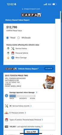 2015 Toyota Prius with low original 109k miles, clean title, 2 keys.