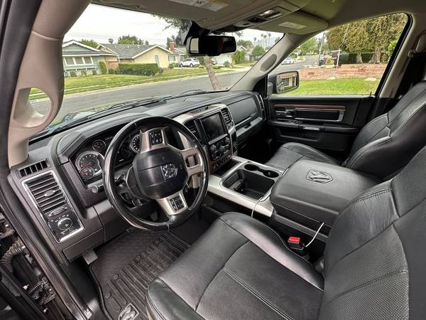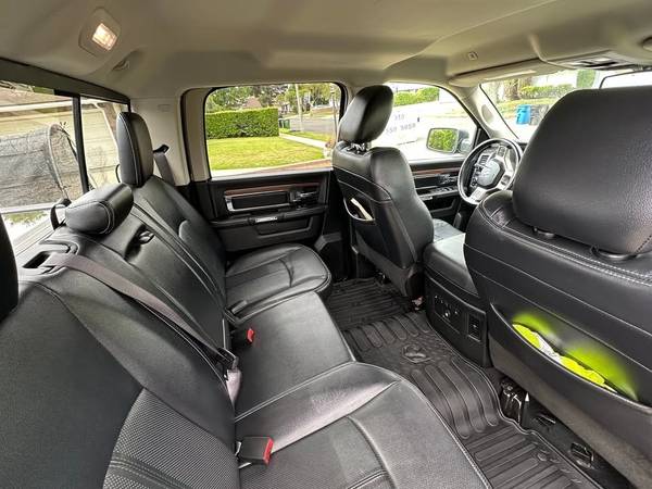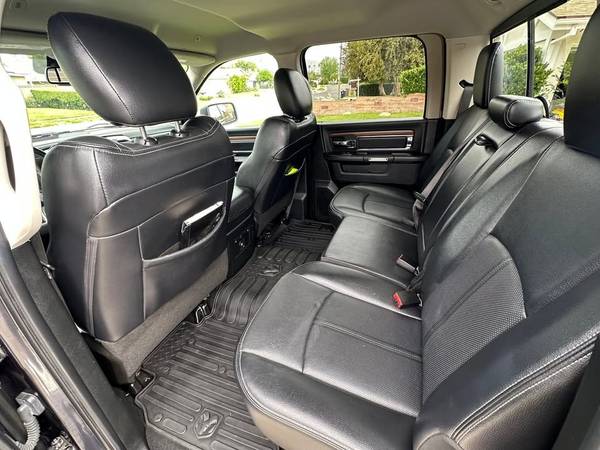 Eco-Diesel, 4x4, Running Boards, 20 Premium Wheels, Leather, Crew Cab, Short Bed, 5-Passenger Seating, Backup Camera, Adjustable Foot Pedals, Bluetooth, Satellite Radio, USB/AUX Ports, Towing Pkg, Integrated trailer Brake Controller, Power Seat, Heated and Cooled Seats, Dual-Zone Climate Control, Power Sliding Rear Window, Power Windows, Power Door Locks, and Cruise Control.