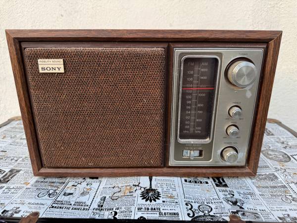 Vintage 1978 Sony Wood Grain Table Top Radio Model Number ICF-9650W Size 14.5“ X 9.25“ H X 5.75“ appears to be functional, but may need a antenna to Garner radio stations