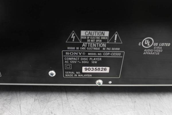PRE-OWNED SONY CDP-CE500 5-DISC CD CHANGER (NO REMOTE) STK #17615200 DO NOT EMAIL, PHONE CALLS ONLY (NOT ON SUNDAY)