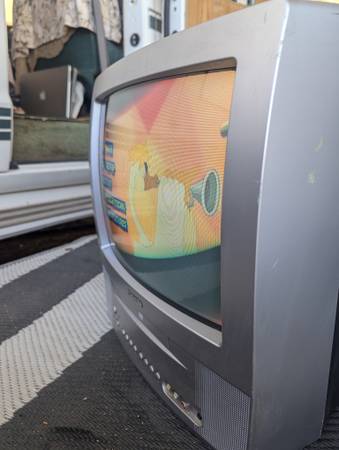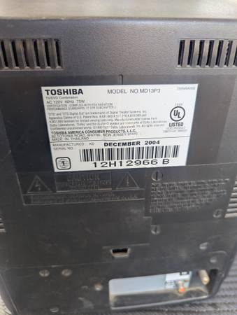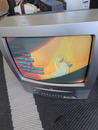 Toshiba television/DVD combo with gaming inputs. Model MD13P3, in good condition. No remote.
