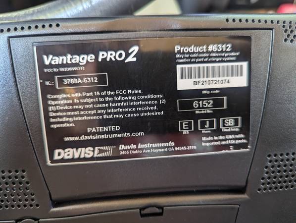 Davis Weather 6312 Vantage Pro2 Wireless console/receiver with power supply.