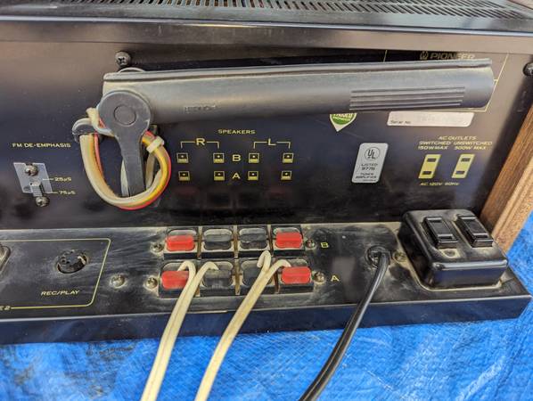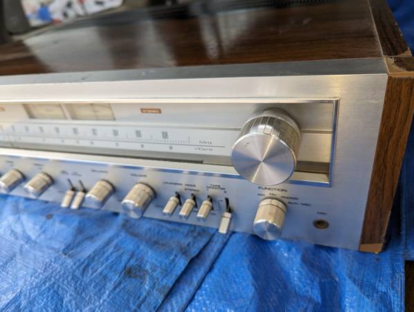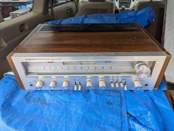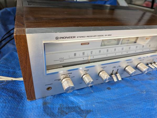 Vintage Pioneer SX-650 stereo receiver in good condition. Wood grain cabinet.