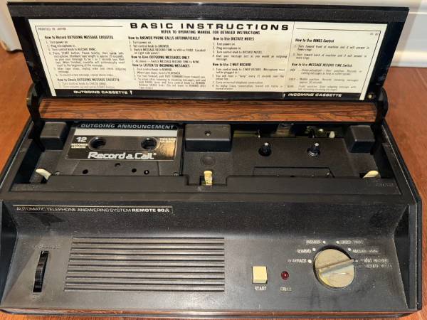 Vintage Answering Machine perfect for your retro room. Mfg 1978-1982. Built in power cord and phone line. Very good condition.