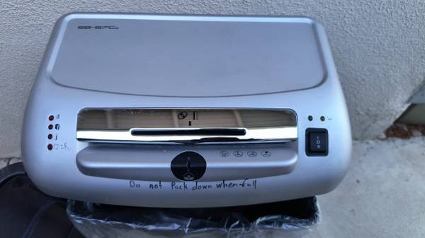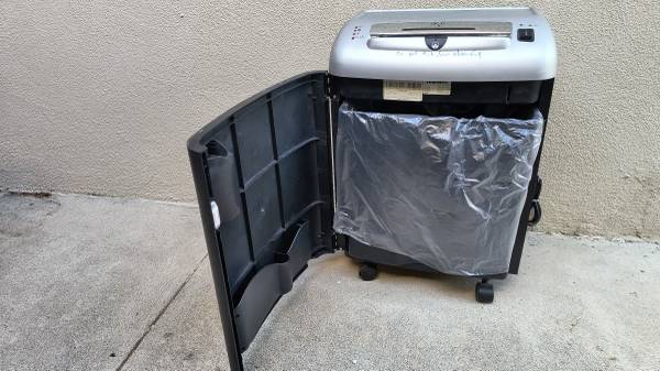 Comes with a sturdy cabinet-style stand that includes smooth-rolling casters for easy moving from place to place.Inside the door, you'll find a convenient compartment for holding the product manual, oil or additional shredder bags.