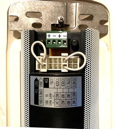 The H Series Minimum Reflection design significantly reduces sound wave reflections and the resulting sound coloration that occurs with conventional bracket-mounted "box" type speakers. Wall- or ceiling-mount installation is fast and easy using standard electrical gang-boxes, and you can rotate and aim the loudspeaker components without altering the enclosure's external appearance. Each H Series speaker has a paintable grille and features a high quality Ferrofluid-cooled dome tweeter, Neodymium woofer, 70.7/100 V matching transformer and removable terminal block.