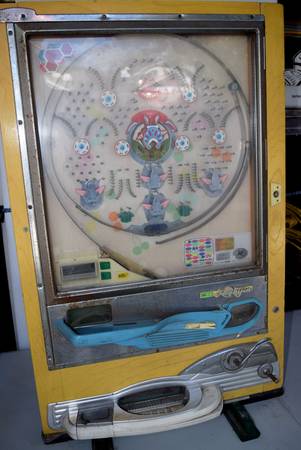 Vintage Nishijin Pachinko machine made in Japan. This original Pachinko machine is from the era when the brand was known for its quality arcade games. While the machine has not been tested and is being sold for repair or parts, it is a rare collector's item for enthusiasts of arcade games and vintage machinery. It holds historical value and nostalgia for those who appreciate the craftsmanship and design of Pachinko machines from that time period.