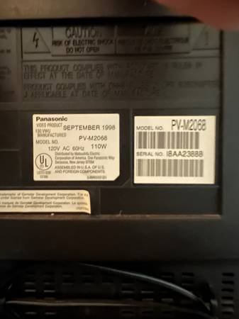 1998 Panasonic 19" PV-M2068 CRT TV and VHS player - $100 (Noho)